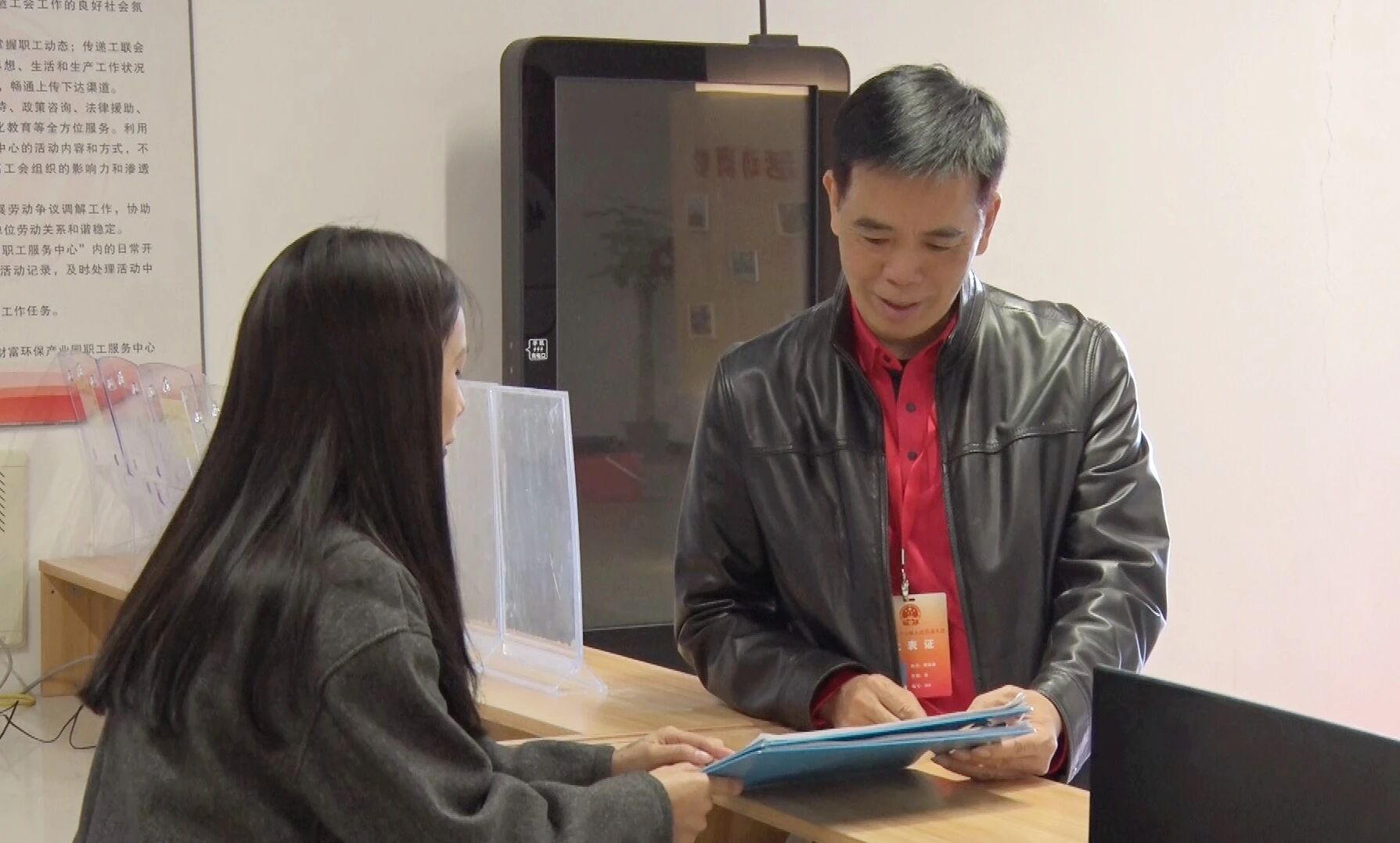 在新财富商会招聘服务站,简树森正和驻点工作人员核对企业用工需求清单,交流招聘进展与诉求反馈。人才是企业发展的基石,“招工难”曾是园区企业扩产的瓶颈,也是园企期待解决的共同呼声。作为人大代表,他精准破题,在园区运营方江门市新财富环保工业有限公司投资建设招聘广场的基础支持下,新财富商会联合第三方设立新财富商会招聘服务站。